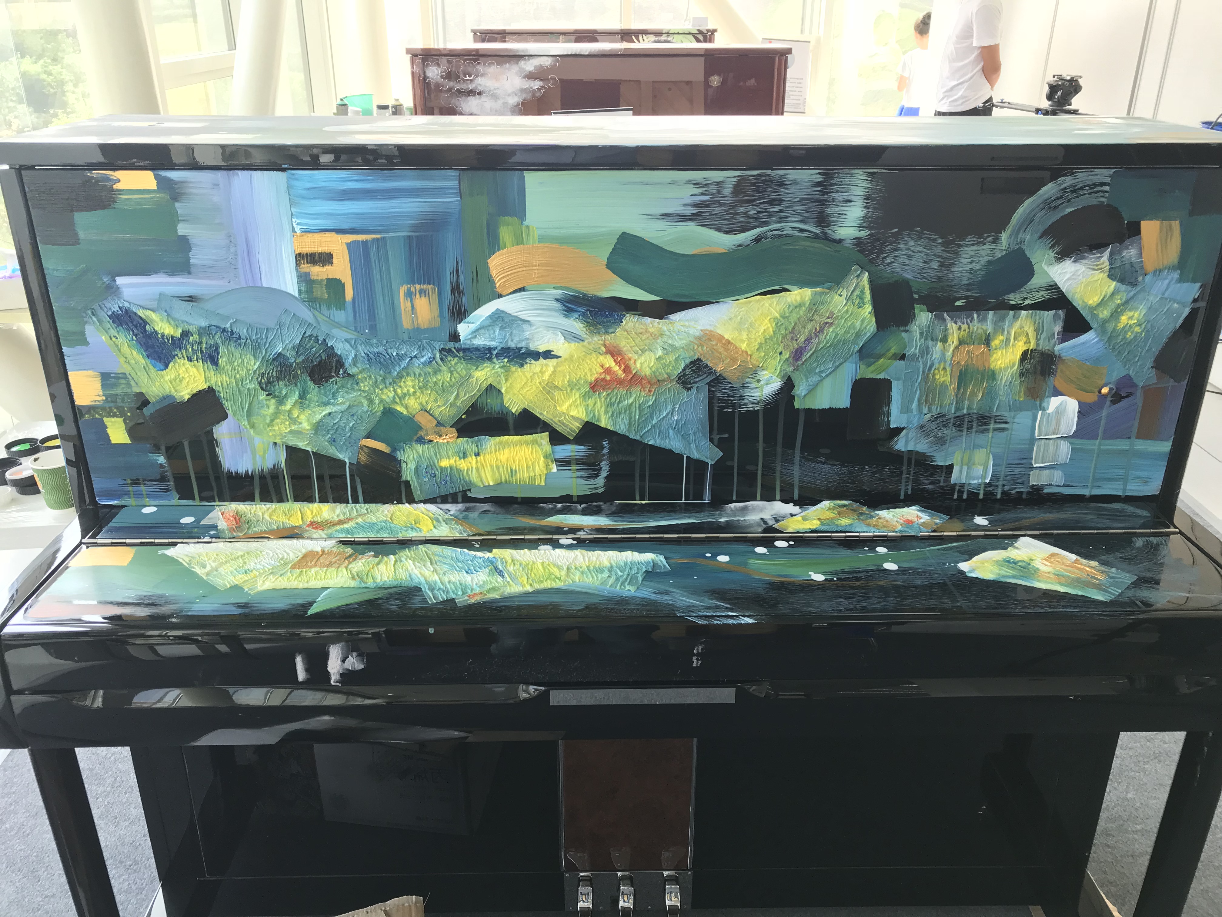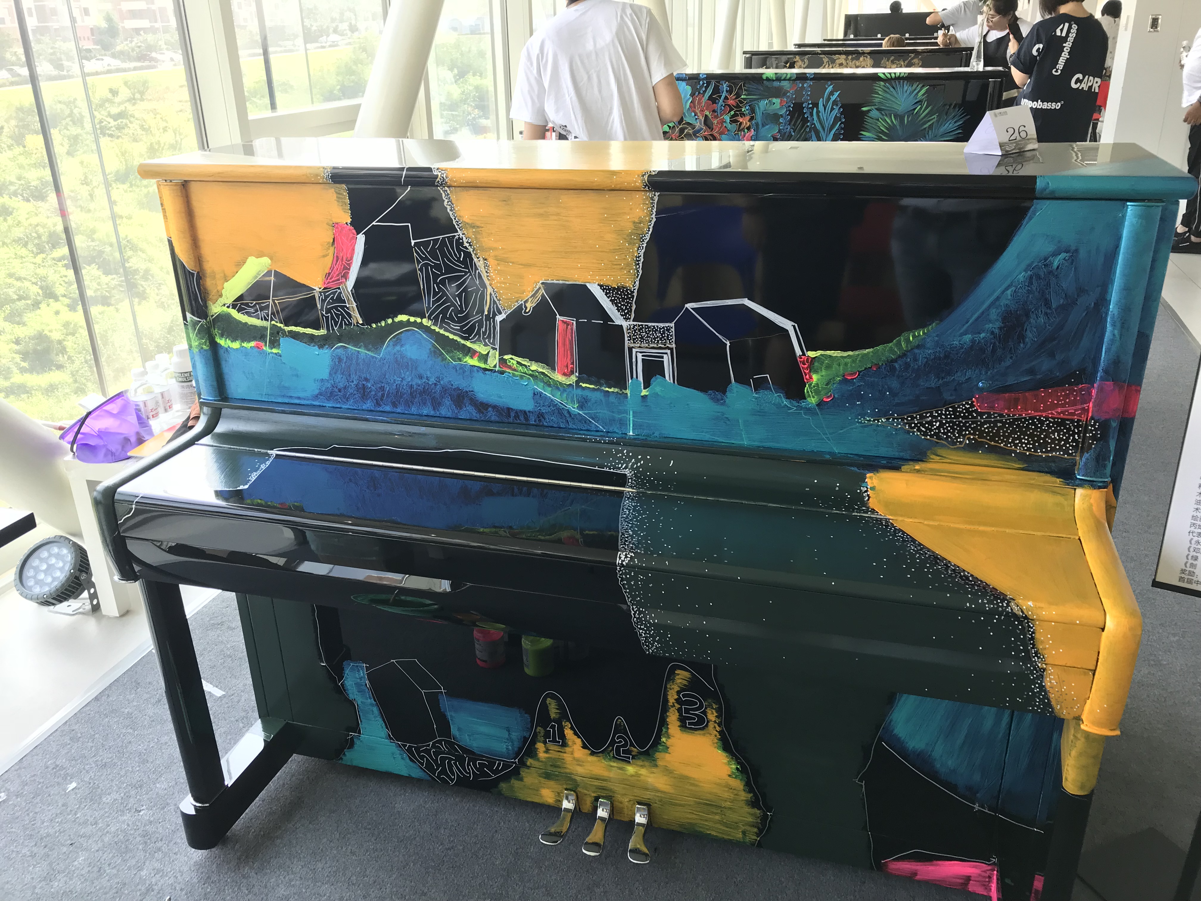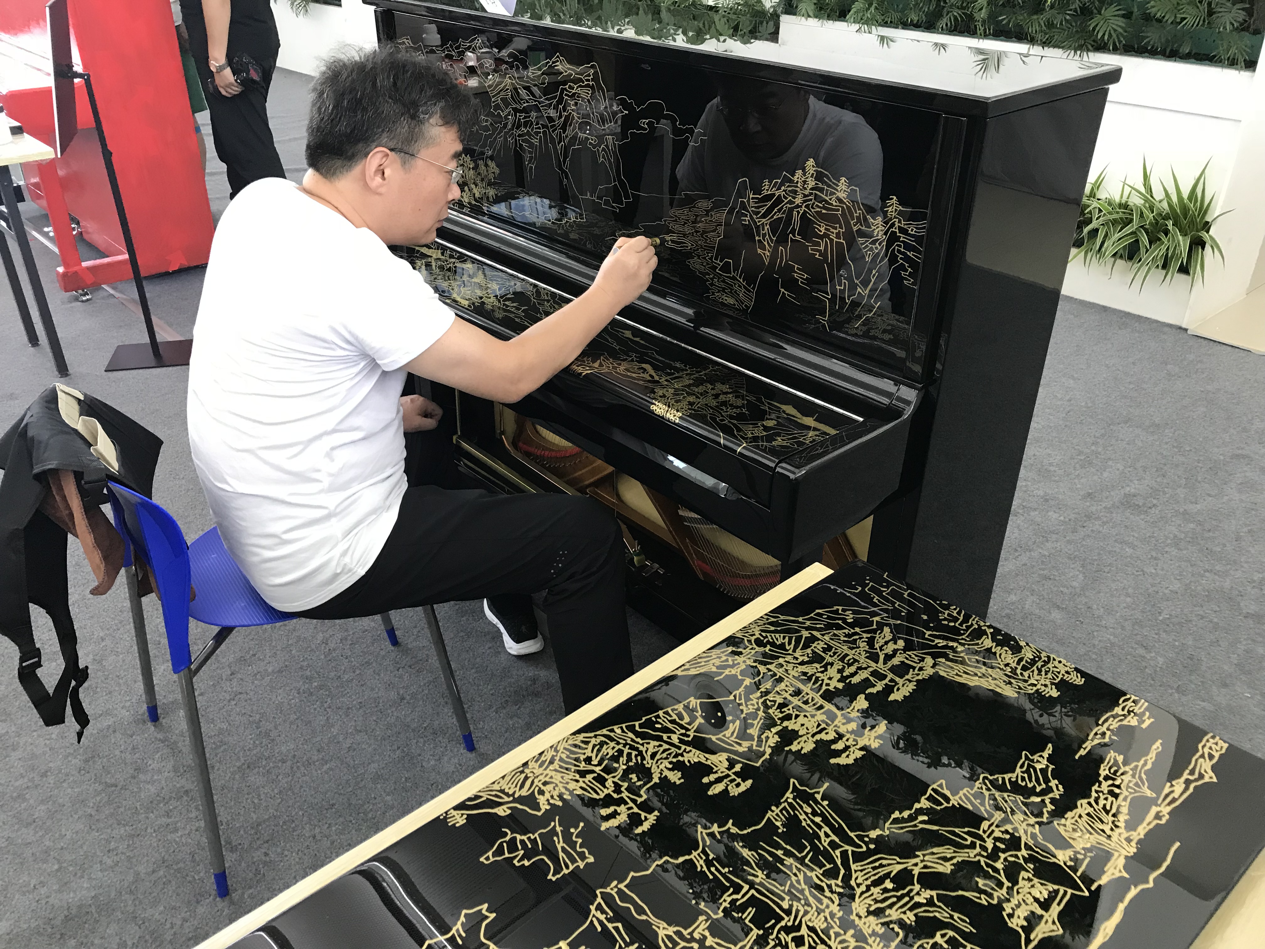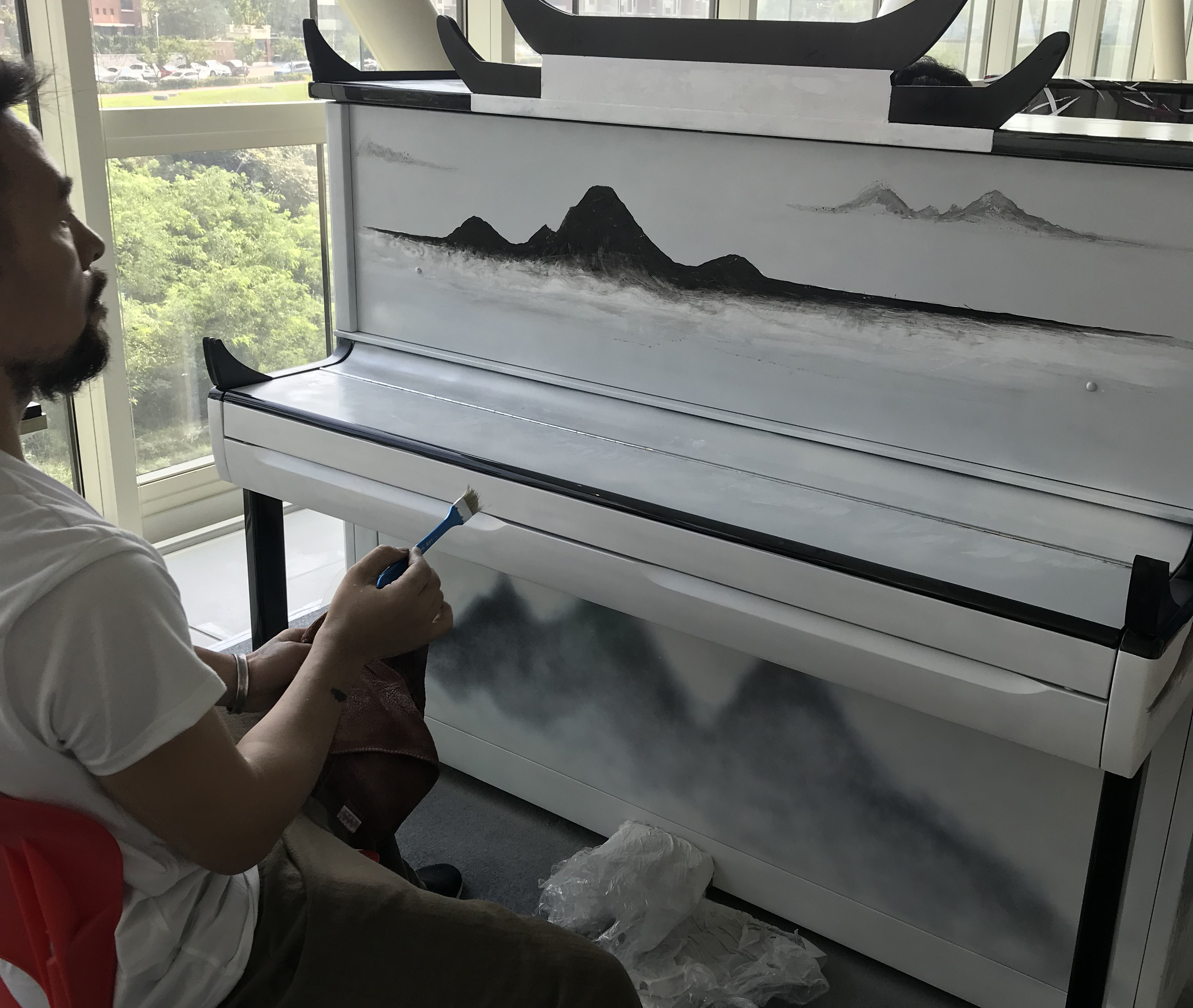 40 namhafte Maler aus ganz China und Hongkong. 40 schwarze Klaviere. Aus Anlass des 40. Jahrestages der chinesischen Reform- und Öffnungspolitik haben 40 Maler 40 Klaviere in Kunstwerke verwandelt, in denen sie zum Ausdruck bringen, was für sie ganz persönlich 40 Jahre Reformen bedeuten. Da ist die beeindruckende Kulisse von Pudong zu sehen, dem Symbol des chinesischen Wandels schlechthin. Da ist auch die Landschaft vor den Küsten Qingdaos zu sehen, in Schwarz und Grau – einem traditionellem chinesischen Tuschbild nachempfunden. Nicht wenige der 40 Künstler greifen auf die traditionelle Malkunst Chinas zurück und schließen einen Bogen zur modernen Malerei – auch das ist ein Symbol der Öffnung. Reine Landschaften spiegeln den Wunsch nach einer sauberen Umwelt wider, die in den ersten Jahren der Reformpolitik im Streben nach schnellen Wachstum zu oft vernachlässigt wurde, aber nun um so resoluter wieder hergestellt wird.